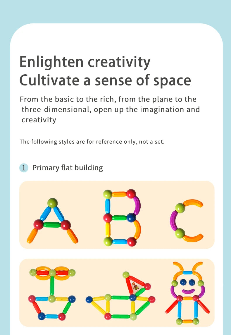 Inspire creativity and learning with the Romboss Magnetic Blocks Set! This fun and educational toy includes colorful magnetic sticks and rods that let kids build amazing shapes, animals, cars, and 3D structures.